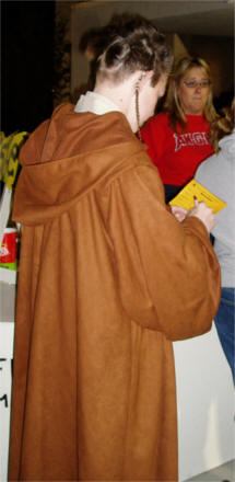 And there he is from the back. You can kind of see the ponytail, but isn't the cloak hood cool?