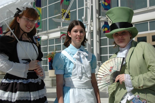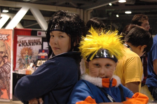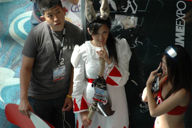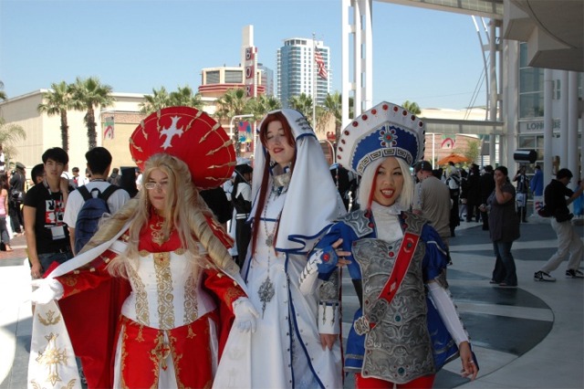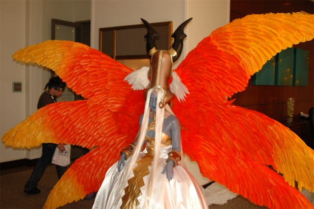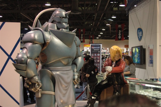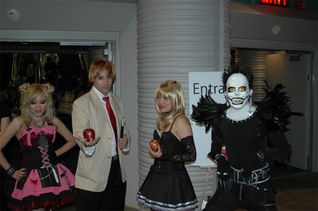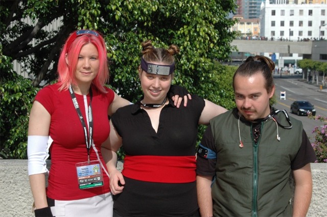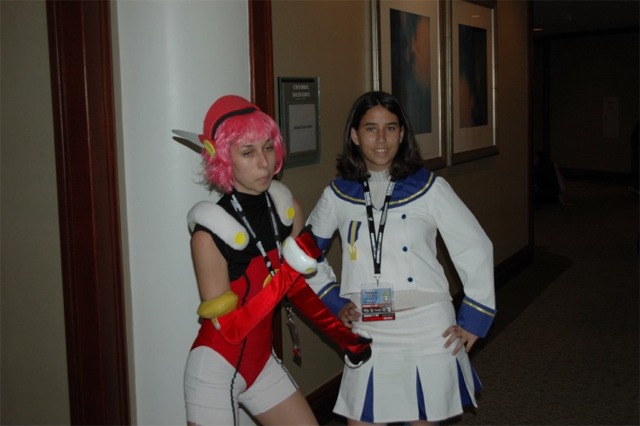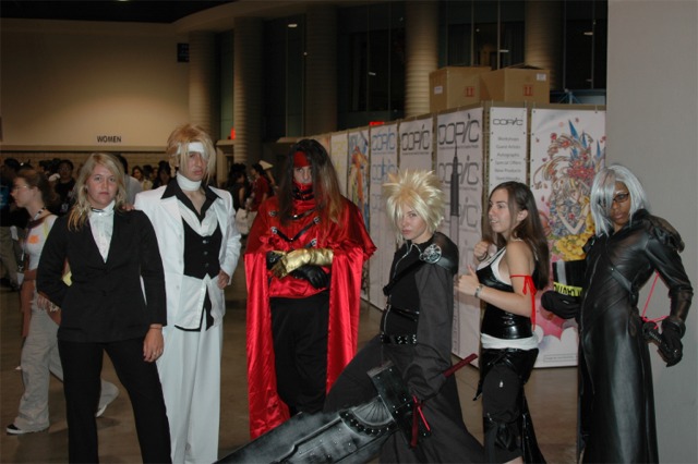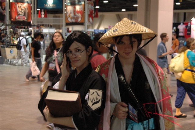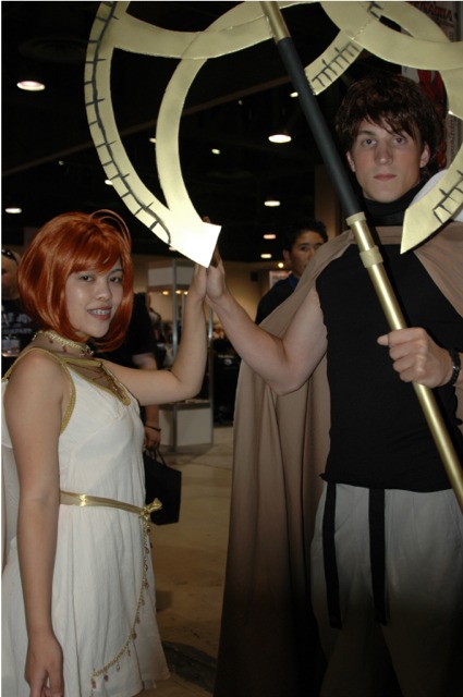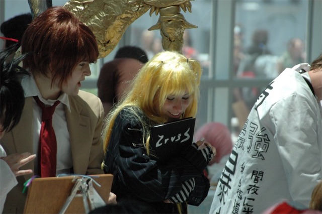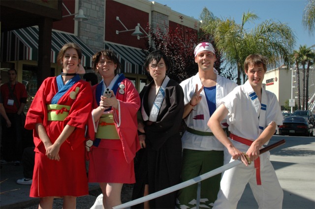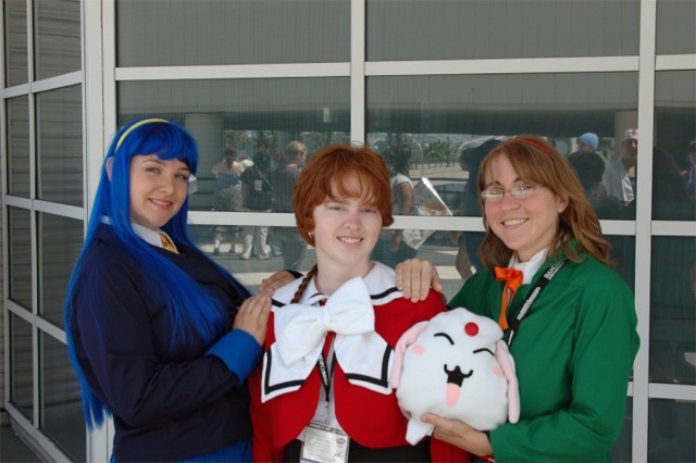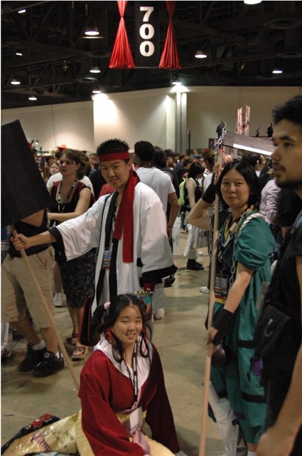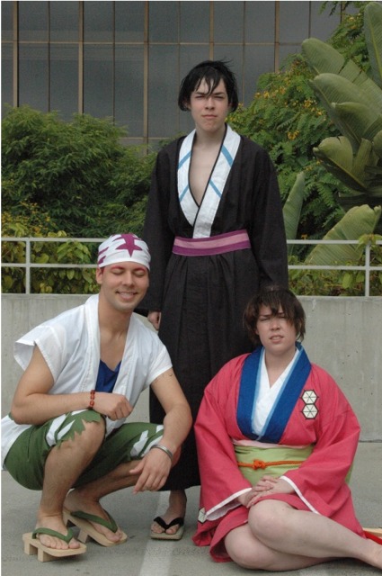 First I want to say that the Long Beach Convention center is evil... and that it's stupid that the convention is going to be in LA next year... dumb people. What happened to Anaheim, did they kick us out or something? Anyway... aside from the very annoying local (you had to take a fifteen minute walk even to get from one room in the center to another because you had to go outside and around...) the convention rocked! I was a little concerned because I had just started a new job, and I had to take Friday off with no pay, but it was so worth it! We wanted to go all four days ('we' being my father, my brother Brian, my best friend Josh, and myself), but we couldn't' afford a hotel room for that long so we only went Friday through Sunday. Josh and I went down after work Thursday to pick up our badges because last year we had to wait in line for almost three hours... and that was with pre-registering and getting our stuff in the mail. What's the point of sending badges in the mail if you still have to stand in line once you get there? Speaking of which... our badges didn't come until the Wednesday before, which was cutting it a little close if you ask me, especially since we registered in January... anyway, it only took us about ten minutes to get all set on Thursday, though we did get lost on the way there... directions are lousy and so are LA freeways... So the dealer room was a little disorganized, and it was annoying because it was only open from noon to six every day, but artist alley was huge! Last year we only went Saturday, spent hours in line, and then the badge holders were falling apart and my dad lost his... so really we only checked out the dealer hall and the little tiny artist alley (it was, like, 25 table, I swear). This year we saw a ton of screenings, went to a Japanese voice acting workshop (in which everything was actually Japanese, so we had a little trouble figuring out what was going on, but it was still fun), and went to a panel on Mushishi. Friday everything was so close (time-wise) and so spread out (location-wise - three of the four video rooms were in the surrounding hotels...) that we were constantly running around and had to eat both lunch and dinner in, like, 8 minutes flat. That was also probably because the surrounding restaurants were not prepared for so many people. By Saturday morning the Great Steak and Potato company was out of steak and French fries... We had to hurry to the ADV booth in the dealer hall after our Voice Acting workshop (which we had a heck of a time trying to find) to buy tickets for a late night screening of "Five Centimeters a Second" which is by the guy who did "Voices of a Distant Star". Like most of his stuff it was rather depressing, but the art is amazing. It was the one thing Josh really wanted to do, so we hurried over. The showing we got was Saturday at 11:30pm, and it was in the cinema in the shopping center across the street. Anyway, we had also heard they were debuting/premiering the English version of Death Note, but it turned out they were only showing the live action movies. We saw them both anyway and they were great! Prompted us to buy the manga, which is also great, and I can't wait for the anime in November! Saturday we dressed up and since Josh and I were both in Geta (the wooden shoes with slats...) it was hard to walk around. But it was fun, and the things we wanted to do were more spread out, so we were alright. We saw three or four screenings that day, plus the second Death Note movie, and then Josh and I came back after dropping my dad and brother at our hotel (we had to stay about 4 miles away because my dad stalled too long on booking rooms...) and changing into normal clothes. We got back early so we went and bought some manga at Borders (buy 3 VIZ get 1 free!), then we read the manga while sitting in the theater. Actually... this is the second special anime engagement I've seen this summer. I went and saw the Naruto movie with my dad and brother on June 6th and that rocked! Anyway... We also checked out the Dealer room and more of artist alley on Saturday (it was so spread out and had so many tables it took us all three days to see it all between our other things)... Josh kept count of how many people wanted our picture. We dressed as Samurai Deep Kyo characters (Brian was Kyo, I was Yuya, and Josh was Benitora), so not many people recognized us, but those who did were way excited... hey, people who love SDK LOVE SDK. We saw a few other people dressed as Kyo in black, but only one other Yuya (though I heard there was one more) and no other Benitora's. At dinner we saw a couple dressed as Kyoshiro (in the white) and Yuya, and we took some pictures with them. I think total we ended up with 14 people who asked to take our picture, and my dad said a few people took our pictures as we were walking by, or when we stopped for someone else. Plus, we ran into five random fanatic fans who had no camera but gushed at us about how great our costumes were, and one person who yelled at us from across the street... It was fun ^_^ Sunday we saw Ergo Proxy, which was exciting because it was the next four episodes that won't be released until August in the US... It was a little strange to hear it in Japanese after growing accustomed to the English voices... but it was still great. I hate that Deadalus' voice is a female in the Japanese though... Then we checked out the dealer room one last time, and finished up Artist Alley before hitting the Mushishi panel. They had shifted it an hour earlier than the schedule said (they were moving things around a lot, for example, Saturday morning we were going to watch .Hack//roots and then Tsubasa, but when we got there .Hack had been replaced by Gundam Seed: Destiny, which I liked much to my surprise), so we missed most of the panel and a few minutes of the first episode, but they showed 3 total and then had a half-hour for questions. Mushishi wasn't at all what I expected after seeing F